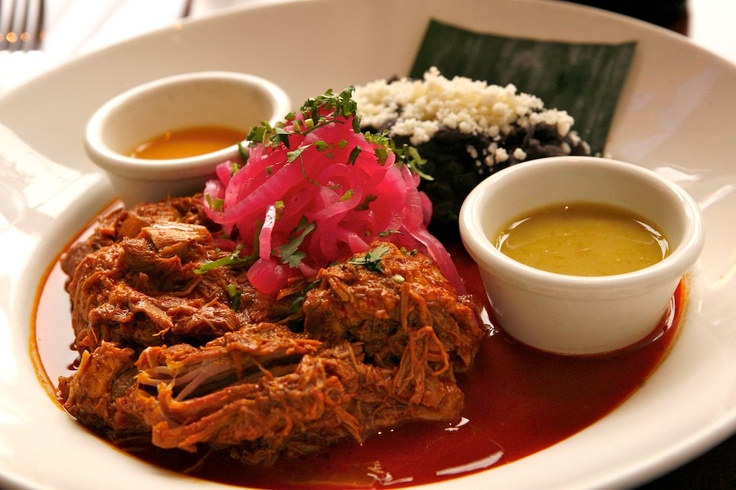 Cochinita Pibil is a traditional Mexican slow-roasted pork dish from the Yucatán Peninsula. Preparation of traditional Cochinita or Puerco Pibil involves marinating the meat in strongly acidic citrus juice, seasoning it with annatto seed which imparts a vivid burnt orange color, and roasting the meat while it is wrapped in banana leaf.