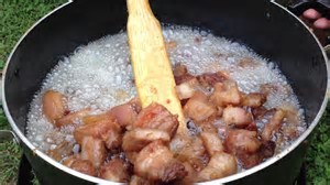 Once pan is hot, add your mixture and bring to a boil. Once boiling add chicharron cut to bite size pieces, Salt to taste.