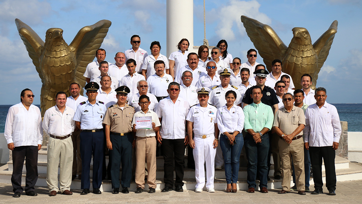 In attendance: Edwin Argüelles González, Secretario del Ayuntamiento de Cozumel; el General Brigadier Diplomado de Estado Mayor, Ricardo Flores González, Comandante de la Guarnición Militar; Capitán de Navío, Gonzalo González Núñez de Cáceres, en representación del Sector Naval de Cozumel; Coronel Meteorólogo, Juan José Alarcón Olivares, en representación de la Base Aérea Militar Número 4; Capitán Alfonso Rodríguez Loaiza, titular de la Capitanía de Puerto, among others.