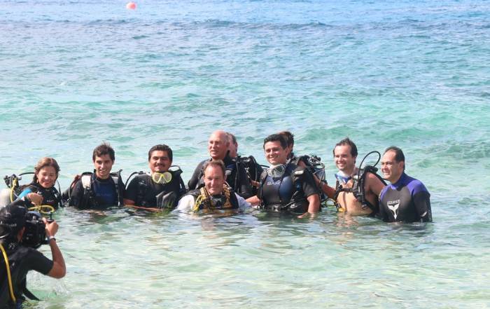 The underwater ceremony with immersion of the bust of the “diver most beloved of Mexico” was officiated by Father Hubert Reiner LC, Ministry of Tourism of the Prelature of Cancun-Chetumal, and by led by the daughter of the honoree, Deborah “Sirenia” Bravo , scientist, researcher and oceanographer .