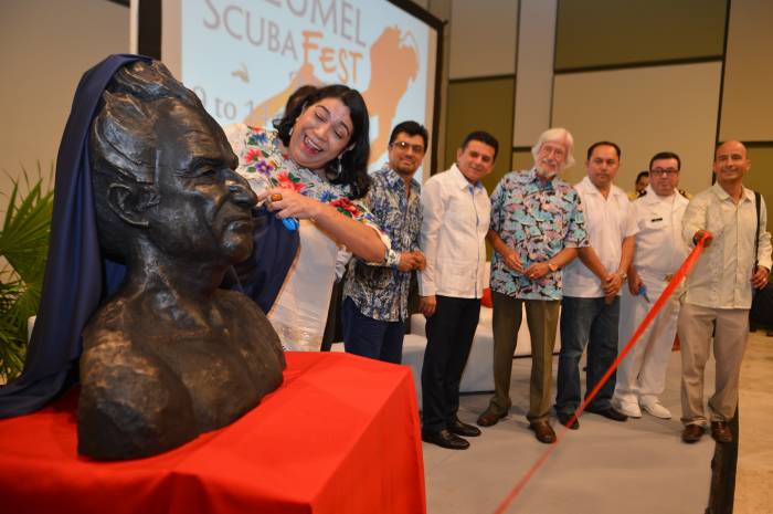 She was accompanied by Mayor, Fredy Martin Marrufo, and Pedro Joaquín Delbouis, Committee Chair of “Scuba Fest 2014, “special guest Jean Michel Cousteau; artist and creator of the bust Sergio Peraza, among others, according to a press release.