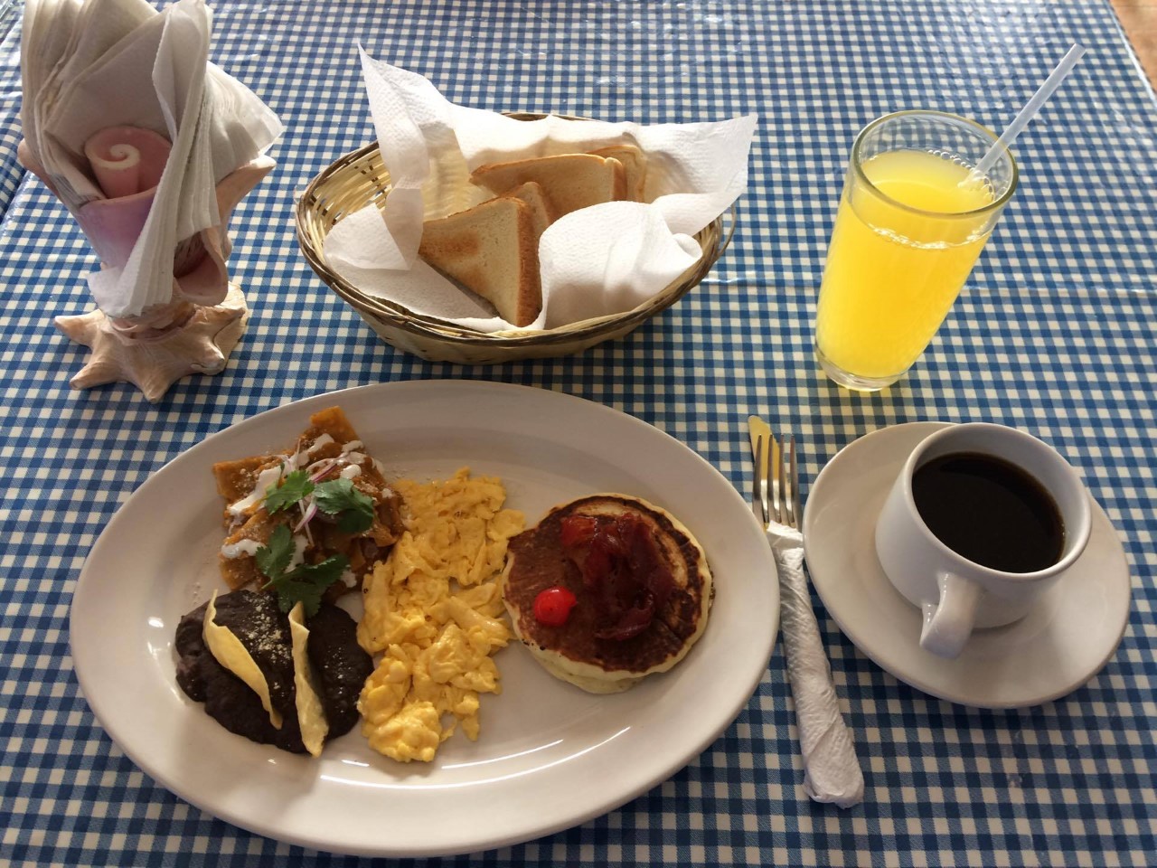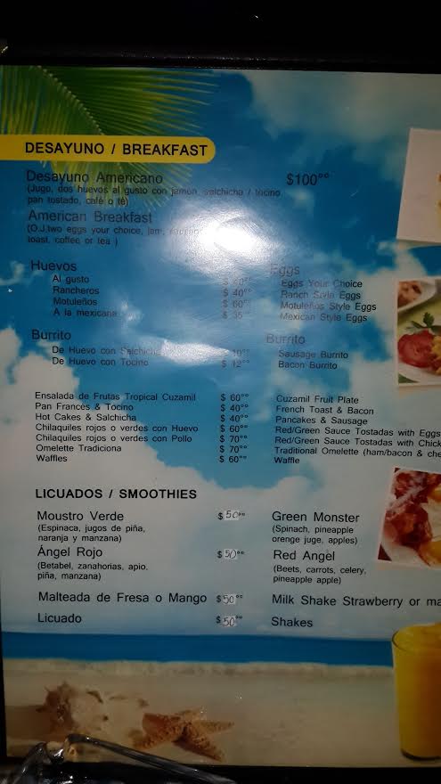 The Manager is offering us a great special for only $70 pesos. Check out the attached photo. The picture shows bacon but you can have sausage instead. They are the link kind like Jimmy Dean sausages.
