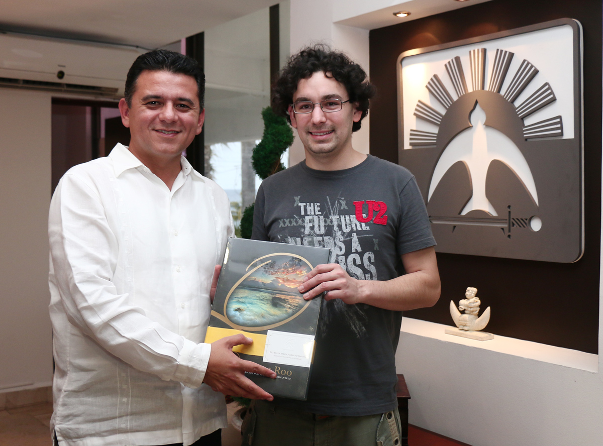 After delivering the “Key to the City,” the Mayor gave him an encyclopedia of the state of Quintana Roo, which has important information of both the State and the island.