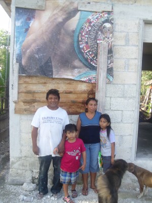 Our Finca Family received Christmas gifts for Mom, Dad, and the two children, as well as a cash gift. We once again included their pets and livestock. We purchased the huge bags of dog food, cat food, and chicken feed for their chicken and turkeys. If you recall this family had been devastated a few years back when their home, a palapa had burned to the ground with all their belongings. With your help, we were able to provide the cement, bricks, and other supplies to help the Dad build his own cement one room home. We then assisted adding a bathroom and plumbing. Our family hired the Mom last year to help us around the house and store the three hours that the children are in school during the week. This additional income has kept the family in food year around and has allowed them to improve their living conditions a little bit a time.
