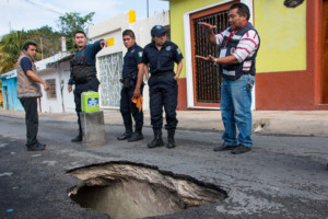 A sinkhole was discovered downtown on 8th between Rafael E. Melgar & 5th Avenida. This was caused by a collapsed water drain, not a cenote. Officials promptly closed off the street and initiated repairs. Repairs can take up to two months.