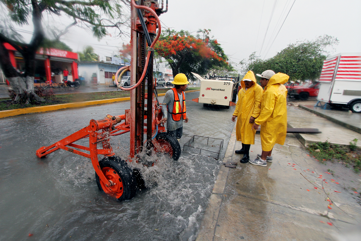 The first point we arrived the mayor was on the 30th Avenue and 29th Street south of the San Miguel II, place where a brigade of the Directorate of Public Works, headed by Humberto Suarez Castillo was at work draining flood waters.