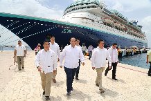June 21, Cozumel: There was an official ceremony for the start of operations of the “Monarch”  “Mayan Caribbean” cruise route.  At the ceremony, Governor Roberto Borge Angulo recognized the shipping company for the creation of this route and choosing Cozumel as the port of embarkation and disembarkation. He stressed that if this route is successful, Pullmantur has promised to expand its operation next year with activities that will last for almost six months in the port of Cozumel.  Cozumel Mayor Fredy Marrufo Martin thanked the Governor for his efforts in making it all happen. He agreed with the Governor that the operation of the cruise route would bring a greater influx of tourism in Cozumel that will mean a significant economic benefit.