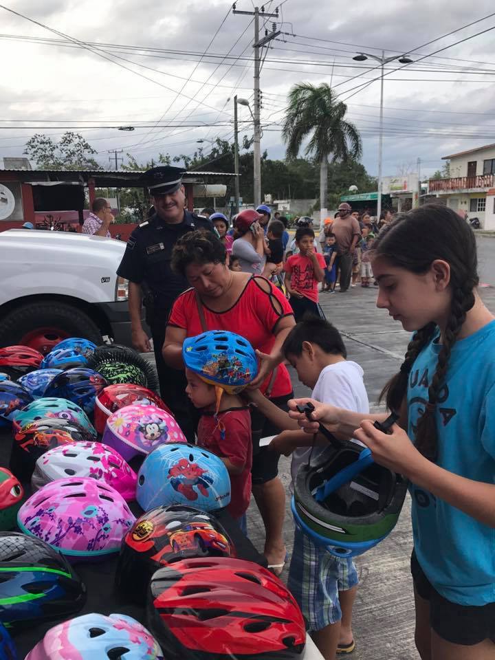 A United States’ based, one family organization, brought 100 children’s helmets to Cozumel. They donated the helmets to families that drive motorcycles with children on board without helmets. This worthy cause truly makes a difference on our island where children’s helmets are scares and totally out of the average families budget.