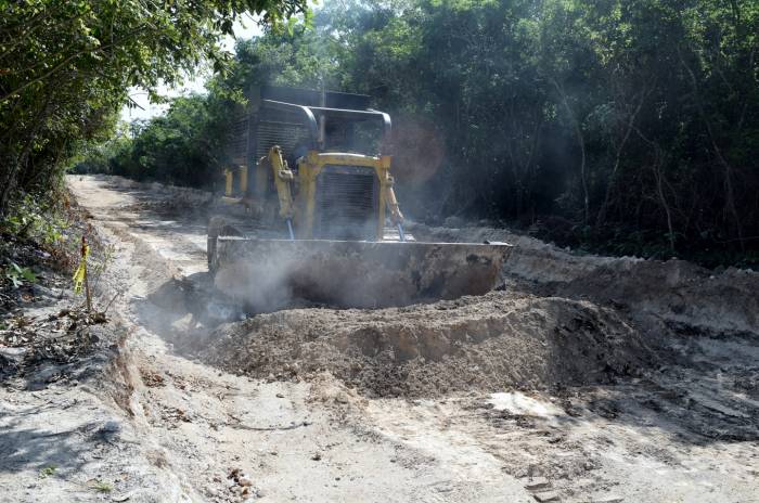 Update: In response to fair claims from the community and environmental groups, Isla Cozumel takes a step forward in defending the existing flora and fauna in the area where the road to Laguna Ciega is with the temporary suspension of construction work. The Urban Development staff and the Ecology Subdirectorate will perform a review of the work where they found certain irregularities that allowed them to impose the suspension.