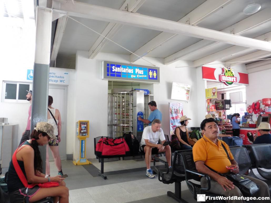 All the modern terminals had bathrooms set up with automated entries that opened after depositing $5 pesos. The bathroom tissue in these are found outside of the stall by the sinks, some have the dispenser right before or after you enter the men’s or Ladies’ room. The entry is a metal bar walk through (like on the subway), not wheelchair accessible. You must ask security for entry into a wheelchair accessible bathroom, usually on the outside of the building by the bus loading area.