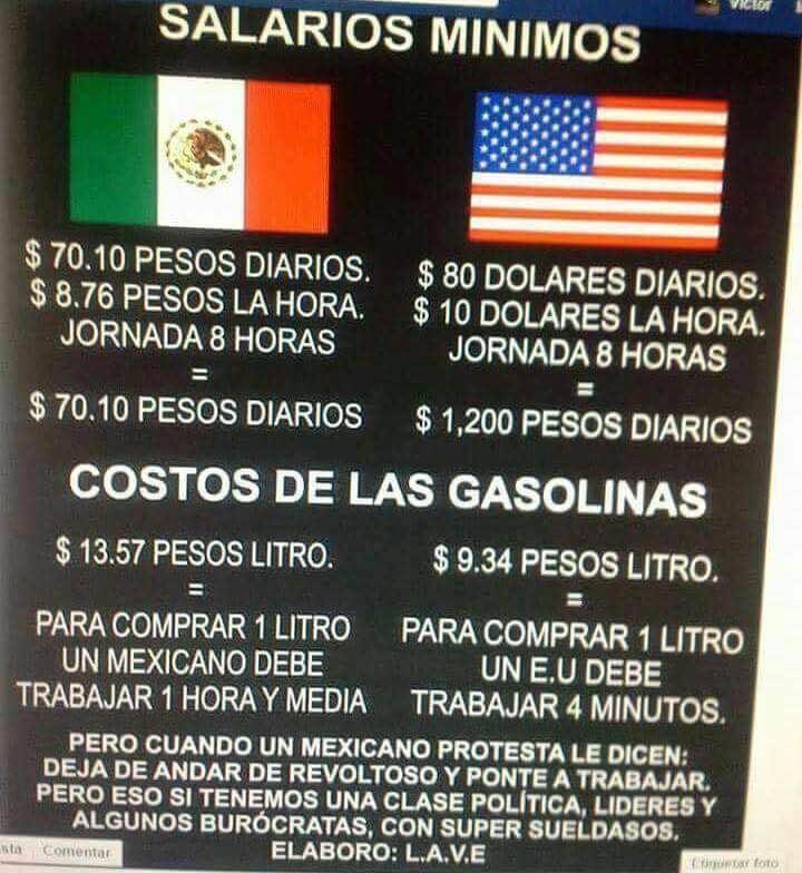 Over the past few years, gasoline prices have increased on a monthly basis. Expect boycotts and protests over this issue. Here is a comparison to U.S. that appeared in Facebook this week: